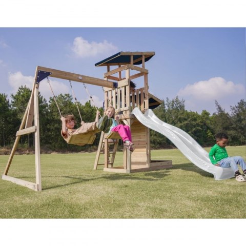 - Łatwy montaż - proste instrukcje i częściowo wstępnie zmontowane elementy pozwalają na szybkie złożenie placu zabaw.