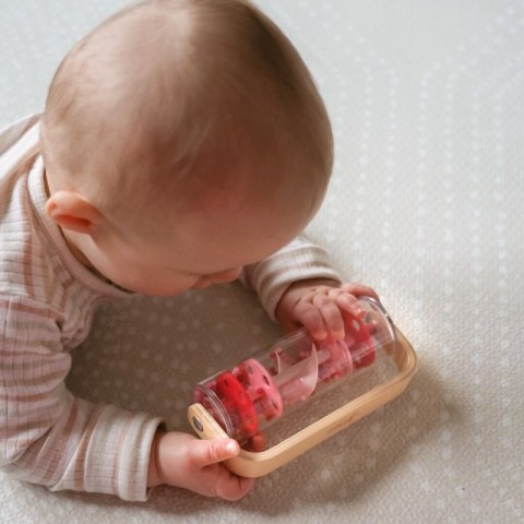 Drewniano-Plastikowa Czerwona Deszczownica z Kuleczkami marki CLASSIC WORLD z przesypującymi się kuleczkami dającymi kojący dźwięk padającego deszczu. Potrząśnij, obróć i obróć, zobacz jak koraliki spadną z góry na dół. Jednym szybkim chwytem możesz przemienić tę zabawkę w grzechotkę, która obraca się o 360 stopni. Świetna propozycja dla rozwoju czuciowego. Idealny rekwizyt do zajęć z rytmiki!