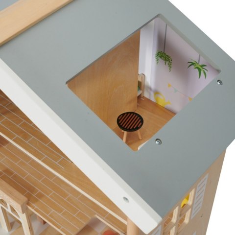 • CLASSIC WORLD Duży Drewniany Domek dla Lalek 2 Figurki NATURALNE DREWNO 28 el.