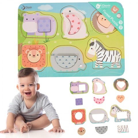 CLASSIC WORLD Układanka Klocki Puzzle dla Dzieci Zwierzęta Dopasuj Nauka Kształtów Kolorów MONTESSORI 6 el.