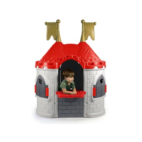 FEBER Domek ogrodowy urządzony w stylu średniowiecznego zamku, idealny dla małych księżniczek i ich książąt! Stylizowany na budowlę z białych cegieł, z czerwonym dachem. Okna i drzwi są w odcieniu szarości. Okiennice otwierają się na zewnątrz, gałka od drzwi jest ruchoma. Całość dopełniają tematyczne grafiki umieszczone na drzwiach, dachu i chorągwiach! Zamek zachwyci każdego malucha oraz sprawi, że zabawy nie będzie końca. Twoja pociecha będzie mogła tworzyć własne historie dla bohaterów zabawy, dzięki czemu pobudzi wyobraźnie oraz kreatywność.