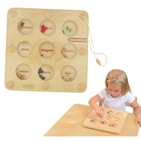 Fantastyczna zabawka edukacyjna marki Masterkidz w formie drewnianej tabliczki. Zabawka ma na celu przekazać wiedzę o magnetyzmie i nauczyć dziecko co może być przyciągane przez magnes, a co nie. Jest to prosta pomoc dydaktyczna, która znacznie ułatwi nudną teorię w czasie lekcji przyrody.