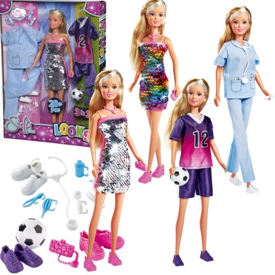- - lalka Steffi w zestawie z 3 różnymi strojami