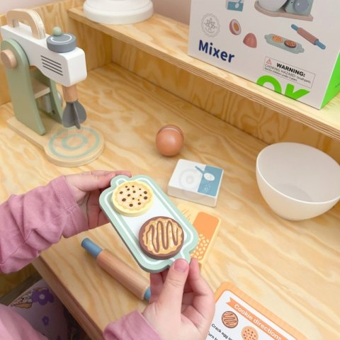 Mikser Drewniany dla dzieci marki Tooky Toy w pastelowych kolorach to przydatny i stylowy dodatek do dziecięcej kuchni. Wszystkie dzieci uwielbiają pyszne ciasteczka. Dlaczego nie przygotować je w formie zabawy? Do miski włóż jajko i mąkę, nie zapomnij o cukrze i rozpocznij proces ugniatania. Dzięki temu otrzymasz apetyczne ciasteczka, jakby były prawdziwe. Mały kucharz będzie mógł częstować swoich bliskich pysznymi wypiekami. Zabawy polegające na odgrywaniu ról są ważną częścią edukacji i rozwoju dzieci. Pozwalają dziecku rozwijać wyobraźnię i ćwiczyć różne umiejętności społeczne i komunikacyjne poprzez symulowanie codziennych sytuacji dla dorosłych.