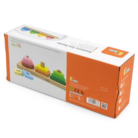 Drewniany Sorter Geometryczny marki Viga, to zabawka edukacyjna do nauki liczenia oraz rozróżniania kształtów i kolorów. Podczas zabawy dziecko rozwija zdolności manualne, koordynację ręka-oko oraz umiejętność logicznego myślenia. Żywe kolory przykuwają wzrok malucha i stymulują ten zmysł. Sorter został pozbawiony ostrych krawędzi, a zastosowanie nietoksycznych farb zapewnia bezpieczeństwo dla dzieci i środowiska.