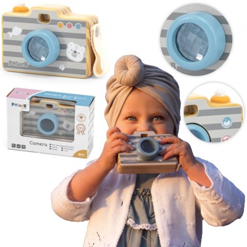 - - drewniany aparat z uchwytem z boku, pozwoli dziecku, na robienie zdjęć swoim lalkom i misiom
