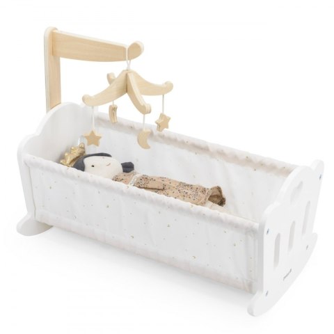 Zapewnij swojej lalki spokojny, przytulny sen dzięki pięknej kołysce VIGA z serii PolarB. Drewniana konstrukcja łączy trwałość z delikatnym, klasycznym lookiem, który pasuje do dziecięcego pokoju. Miękka bawełniana poduszka i kołderka z motywem gwiazd i księżyca dodają uroku i ciepła. Urocza karuzela nad łóżeczkiem wprowadza element zabawy i uspokojenia przed snem. To nie tylko zabawka — to przestrzeń, w której dzieci uczą się opieki, empatii i odpowiedzialności.