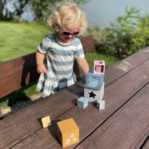 - - dzieci mogą układać kostki dowolnie, uczyć się liczb, dopasowywać kształty w sorterze, poznawać zwierzątka,