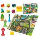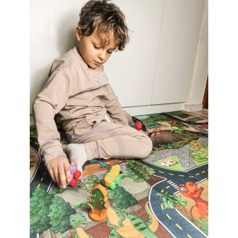 Mata drogowa z motywem Dinozaurów od marki WOOPIE będzie wspaniałą zabawką dla Twojego dziecka. Dziecko może usiąść na macie i sterować samochodzikami dinozaurami. Dzięki akcesoriom takim jak znaki drogowe maluch może poznać zasady ruchu drogowego. Mata oprócz dróg i parkingów przedstawia wiele dinozaurów, które urozmaicają zabawę Twojego dziecka. Elementy jak samochodziki, kostka oraz znaki drogowe są miękkie i można je ściskać - są bezpieczne dla dzieci! Mata rozwinie zdolności manualne, wyobraźnię i kreatywność Twojego dziecka.