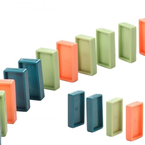 - - 60 klocków domino (pomarańczowe, niebieskie, zielone)