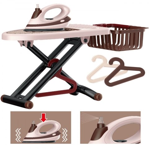 Zestaw do Prasowania od marki WOOPIE doskonale imituje rzeczywiste urządzenia. W zestawie znajdziemy żelazkodeskę do prasowania, kosz na pranie, dwa wieszaki oraz dwa opakowania proszku na pranie. Żelazko jest zabawką bezpieczna dla dzieci, ponieważ nie nagrzewa się. Zostało ono wyposażone w wiele funkcji, które urozmaicą zabawę: świecącą lampkę LEDwibracje, efekty dźwiękowe oraz funkcję spryskiwania po napełnieniu żelazka wodą. Zabawka działa także bez napełniania wodą. Dzięki zastosowanemu czujnikowi żelazko wibruje, gdy będzie położone na płaskiej powierzchni i podczas przesuwania po niej. Jest to doskonały zestaw dla dzieci, które uwielbiają naśladować rodziców podczas codziennych czynności.