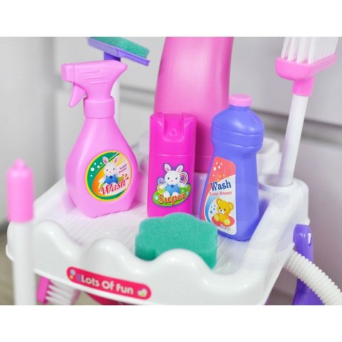 Zestaw sprzątający od renomowanej marki Woopie to idealny pomysł na prezent dla małej dziewczynki. Ten wysoce profesjonalny zestaw jest odwzorowaniem prawdziwych sprzętów służących dorosłym do robienia porządków. Różowo-biały wózek został wyposażony w dodatkowe akcesoria, aby dziecko mogło pomóc rodzicom w sprzątaniu. Odkurzacz wyposażony jest we włącznik/wyłącznik oraz lampkę sygnalizującą moc. Zabawa w sprzątanie od najmłodszych lat może być świetnym sposobem, aby nauczyć się dbać o czystość. Maluchy uwielbiają naśladować dorosłych. Z takim zestawem będzie to dużo prostsze!