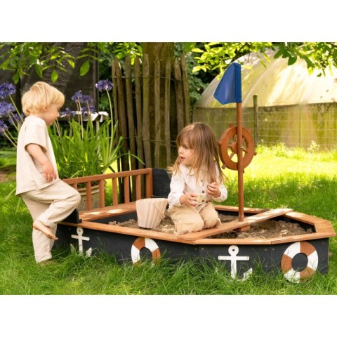 • AXI Drewniana Piaskownica Statek Piracki Doris ze Schowkiem + Pokrowiec 153 cm