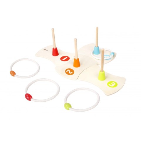 - Każdy z graczy rzuca 4 obręczami do słupków.