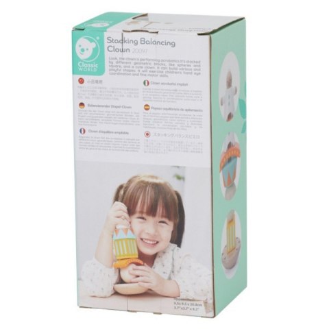 • CLASSIC WORLD Drewniana Układanka Piramidka Klocki Balansujący Wesoły Klaun