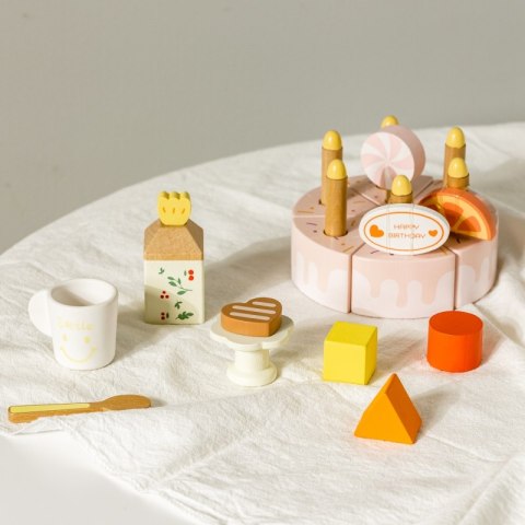 • CLASSIC WORLD Drewniany Tort Urodzinowy do Krojenia Świeczki Owoce 16 el.