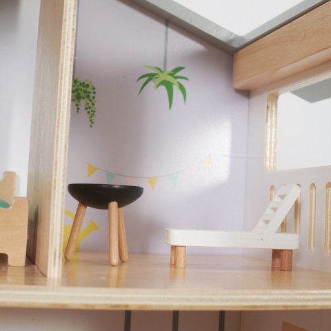 • CLASSIC WORLD Duży Drewniany Domek dla Lalek 2 Figurki NATURALNE DREWNO 28 el.