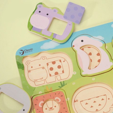 CLASSIC WORLD Układanka Klocki Puzzle dla Dzieci Zwierzęta Dopasuj Nauka Kształtów Kolorów MONTESSORI 6 el.