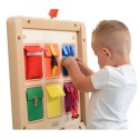 • MASTERKIDZ Drewniana Tablica Manipulacyjna Ścienna Flex Kolorowe Kieszonki Klamry i Rzepy