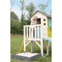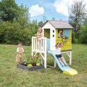 Domek na Palach z Piaskownicą i Zjeżdżalnią firmy Smoby to zabawka dla dzieci od 2 lat, która zapewnia mnóstwo atrakcji na zewnątrz. Domek jest idealny do zabawy w grupie, dzięki swojej przestronności i funkcjonalności. Domek stoi na wysokich palach, do których prowadzi stabilna drabinka. Z tarasu można zjechać zjeżdżalnią o długości 150 cm, co na pewno sprawi wiele radości maluchom. Domek ma kolorowe okna z okiennicami, które można otwierać i zamykać, a także drzwi wejściowe i dodatkowe okno z tyłu. Pod domkiem znajduje się piaskownica, która może służyć także jako ogródek do uprawy roślin.Domek jest wykonany z wysokiej jakości tworzywa sztucznego, które jest odpornym na warunki atmosferyczne i blaknięcie. Domek można także łączyć z innymi akcesoriami firmy Smoby, takimi jak dzwonek, podłoga, zraszacz, donica ogrodowa lub zestaw pogodowy (sprzedawane osobno). Domek na Palach z Piaskownicą to wspaniała zabawka dla dzieci, które lubią odkrywać świat i bawić się na świeżym powietrzu.