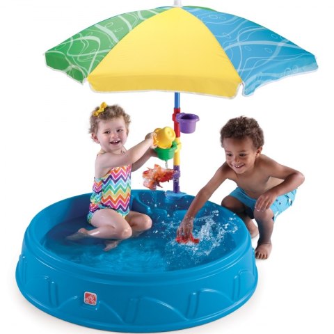 Basen Ogrodowy dla Dzieci z Parasolem od renomowanej marki Step2 to idealne rozwiązanie na upalne dni! Solidna i trwała konstrukcja zapewnia bezpieczną zabawę na świeżym powietrzu. Basen został wyposażony w kolorowy parasol, który zapewni dzieciom cień w upalne dni. Tyczka parasola służy do mocowania dołączonych do basenu akcesoriów takich jak sitko czy młynek wodny. Dno basenu posiada antypoślizgowe wytłoczenia zapewniające przyczepność dla małych stópek. Na brzegach basenu nie mogło zabraknąć także dwóch odpowiednio wyprofilowanych siedzisk. Maksymalne obciążenie każdego z nich wynosi 23 Kg. Basen Play & Shade Pool pomieści ok 45 L wody lub ok 75 Kg piasku.