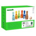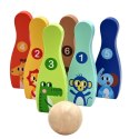 Kręgle Zwierzątka od marki TOOKY TOY to wszystko czego dzieci potrzebują, aby rozwijać zdolności ruchowe i jednocześnie świetnie się przy tym bawić. Zestaw zawiera 6 kręgli oraz 1 piłkę, które wykonane są z drewna. Gra w kręgle będzie wspaniałą zabawą dla Twojego maluszka, ale również dostarczy wiele korzyści edukacyjnych. Zabawka rozwija zdolności motoryczne Twojego dziecka poprzez m.in.: bieganie i rzucanie.