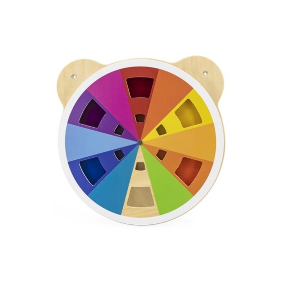 Tablica z akrylową tarczą w różnych odcieniach od marki Viga. Dziecko dzięki obracaniu tarczy tablicy może mieszać kolory w dowolny sposób i odkrywać jakie inne barwy powstają. W sumie można uzyskać aż 60 różnych kolorów. Produkt idealnie sprawdzi się zarówno w domowym zaciszu, szkole oraz przedszkolu. Ciekawe przygotowanie formy tablicy z pewnością przykuje uwagę każdego malucha. Całość wykonana została z drewna lakierowanego i pomalowana nietoksycznymi farbami w żywe barwy, które zadowolą każdego użytkownika i dadzą mnóstwo radości z zabawy. Produkt przeznaczony dla dzieci od 18 miesiąca życia.