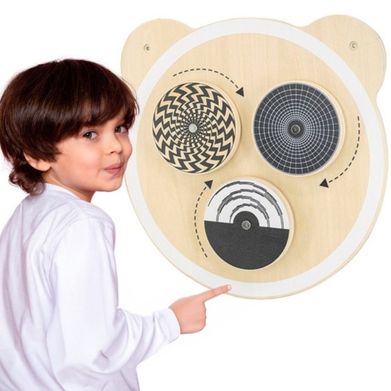 VIGA Drewniana Tablica „Wirujące Punkty" to kreatywna zabawka edukacyjna wykonana w 100% z naturalnego drewna z certyfikatem FSC, która łączy zabawę z nauką. Ta niezwykła tablica z trzema kolorowymi krążkami wywołuje fascynujące złudzenia optyczne, rozwijając przy tym obserwację i ciekawość dziecka. Przykuwa uwagę maluchów i zachęca do samodzielnej, twórczej aktywności. Malowana nietoksycznymi farbami w żywe barwy, jest bezpieczna nawet dla najmłodszych od 18. miesiąca życia. To doskonały sposób na rozwój logicznego myślenia, wyobraźni i zdolności manualnych Twojego dziecka. Idealna do domu, żłobka, przedszkola czy sali zabaw. W naszej ofercie dostępna jest cała seria tablic sensorycznych.