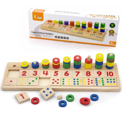 Drewniane Liczydło kreatywne Liczarka cenionego producenta zabawek Viga Toys działa w zgodzie z zasadami nauki Montessori dla dzieci od 3 roku życia. Jest idealne do przedszkola jak i do domu. Przy pomocy takiego liczydła nauka liczenia będzie jeszcze prostsza i przyjemniejsza. Drewniana liczarka składa się z 55 krążków, 20 klocków z numerami i kropkami, 1 podstawy i 10 kołeczków. Kolorowe liczydło cieszy oko i zachęca do zabawy.