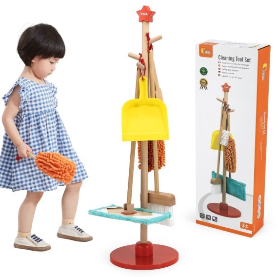 VIGA Drewniany Zestaw Narzędzi do Sprzątania 6 el.