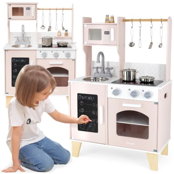 Odkryj drewnianą kuchnię od marki Viga z serii PolarB - stwórz razem z dzieckiem magiczny świat małego szefa kuchni! Dźwiękowe pokrętła i realistyczne akcesoria sprawiają, że zabawa staje się jak prawdziwe gotowanie. Twoja pociecha będzie, gotować i zmywać, rozwijając przy tym wyobraźnię i odpowiedzialność. Kuchnia wykonana z trwałego drewna w pięknej kolorystyce to gwarancja bezpieczeństwa i estetyki. To nie tylko zabawka - to doskonała nauka przez zabawę, idealna dla maluchów i praktyczna dla rodziców!