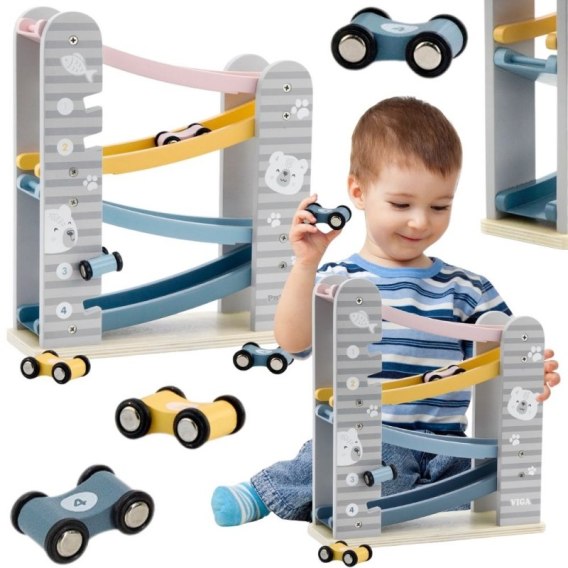 Drewniany tor zjeżdżalnia Viga PolarB to wspaniała zabawka dla małych miłośników samochodzików, która łączy prostą konstrukcję z emocjonującą zabawą w wyścigi. Z pastelowymi kolorami i łagodnym, bezpiecznym designem idealnie wpisuje się w dziecięcy pokój. Cztery kolorowe auta z numerami zjeżdżają po torze, ucząc jednocześnie planowania i obserwacji. Dzięki specjalnemu miejscu na przechowywanie samochodzików dzieci nie gubią pojazdów - wszystko jest zawsze pod ręką. To nie tylko rozrywka, ale także sposób na rozwijanie motoryki, koordynacji i logicznego myślenia u malucha.