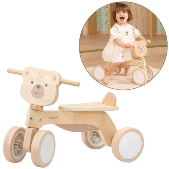 Drewniany jeździk trójkołowy z misiem brunatnym - bezpieczna i aktywna zabawa!