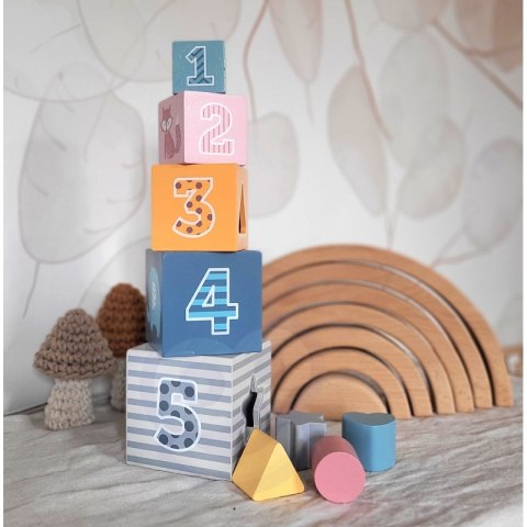 Kolorowa piramidka edukacyjna z sorterem kształtu to zabawka uwielbiana przez dzieci. Delikatne pastelowe kolory oraz estetyka wykonania, zachęcają dzieci do zabawy.