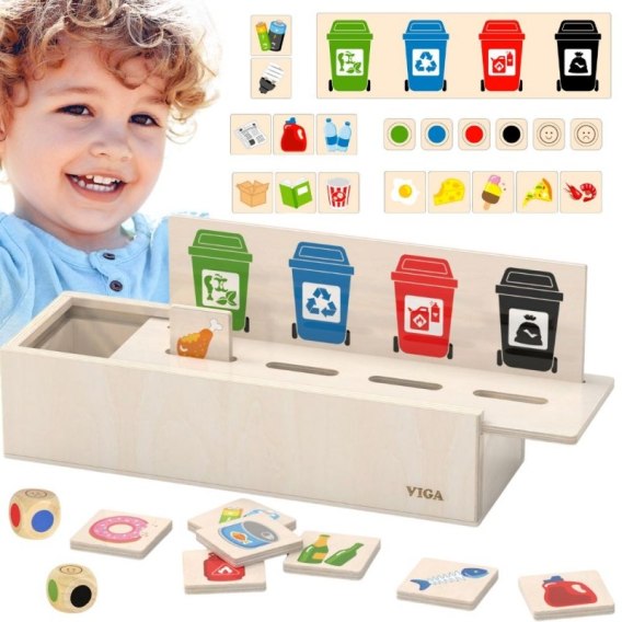 • VIGA Układanka Gra edukacyjna drewniana do nauki sortowania śmieci