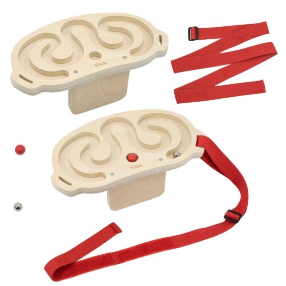 VIGA Zestaw labiryntów do balansowania ciałem to innowacyjna gra ruchowa, która angażuje całe ciało, rozwijając koordynację i równowagę. Dzięki dwóm drewnianym labiryntom i kulkom o różnej masie, zabawa staje się ekscytującym wyzwaniem dla dzieci. Gracze zakładają pas z labiryntem na talię, klatkę piersiową, nogi lub ramiona, a następnie poruszają ciałem, aby wprawić kulkę w ruch i przeprowadzić ją przez labirynt. Zabawki można używać samodzielnie lub rywalizować w parach, co dodaje zabawie dynamiki i integruje uczestników.