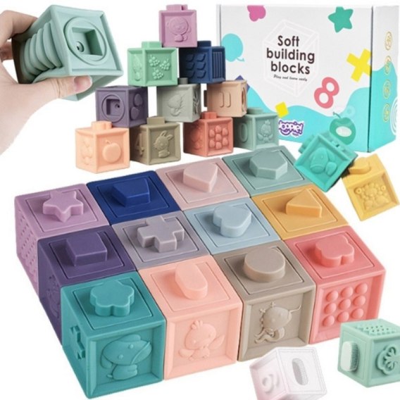 • WOOPIE BABY Klocki Sensoryczne Układanka Do Ściskania Dźwięk 12 el.