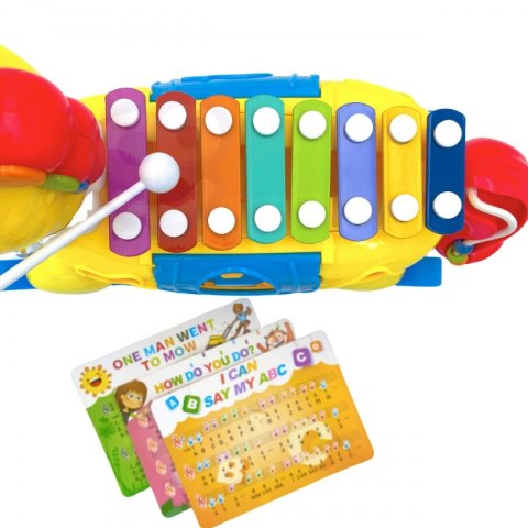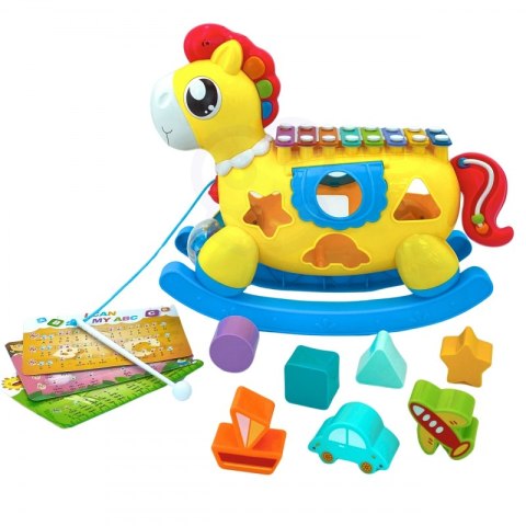 • - 8w1 - cymbałki, sorter, ruchomy ogon, grzechotka, muzyka, światło, siodełko klapka, karty do nauki gry