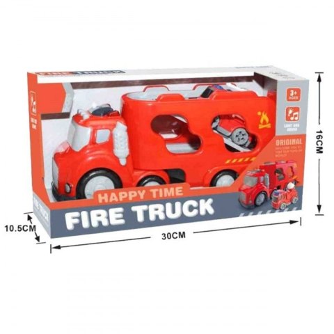 Laweta Fire Truck z serii CITY TRUCK to idealna zabawka dla każdego małego fana motoryzacji i miejskich pojazdów specjalnych. W skład zestawu wchodzi czerwona laweta przewożąca małe pojazdy strażackie. Zabawka została wykonana z trwałego tworzywa sztucznego, wyposażona w efekty świetlne i dźwiękowe, które aktywują się po naciśnięciu przycisku na dachu pojazdu.