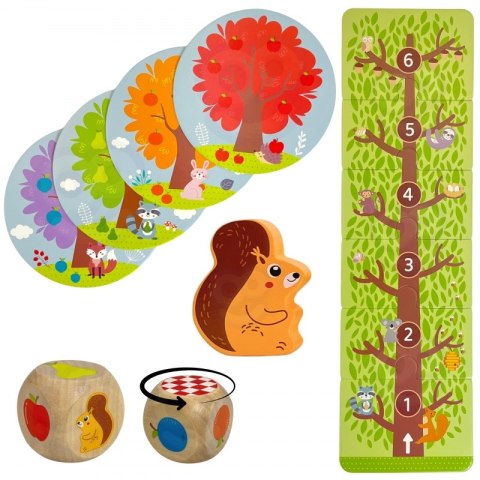 Zadanie jest proste - zbierzcie wszystkie owoce do koszyka, zanim wiewiórka zdąży je „porwać" z drzewa! Ta urocza gra uczy współpracy, planowania i koncentracji, a przy okazji zapewnia mnóstwo śmiechu i ekscytacji. Wykonana z wysokiej jakości drewna i pięknie ilustrowana, wprowadza dzieci w świat planszówek poprzez zabawę i działanie.