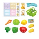- - Do zestawu dołączono: koszyk na zakupy, warzywa, owoce, kartę płatniczą, sztuczne banknoty i monety, i inne artykuły.