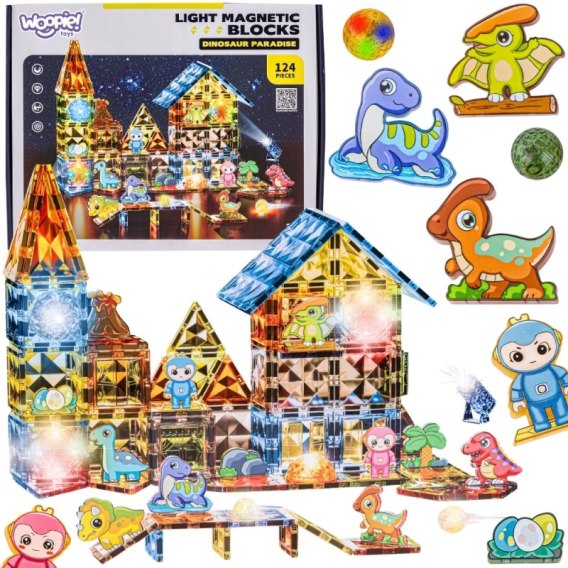 • WOOPIE Klocki Magnetyczne Konstrukcyjne Świecące 3D Park Dinozaurów 124el.