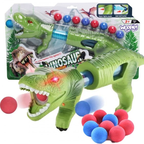 WOOPIE Pistolet na Piłki Kulki Piankowe Wyrzutnia Automatyczna Dinozaur 9 el.