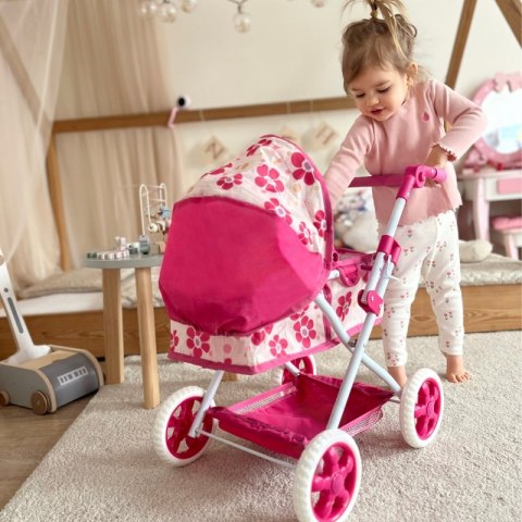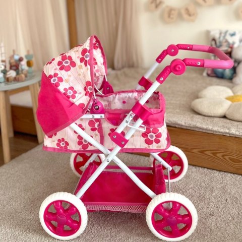 Stylowy, głęboki i funkcjonalny wózek dla lalek od mark WOOPIE  z kwiecistym wzorem to idealna propozycja dla każdej małej miłośniczki zabawy lalkami! Wózek ma regulowaną rączkę, dzięki czemu rośnie razem z dzieckiem. Jego ciche koła gwarantują płynność w prowadzeniu, a stabilna konstrukcja zapewnia bezpieczną zabawę.
