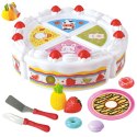 Zestaw do herbaty z tortem od marki Woopie to idealna propozycja na spotkania z przyjaciółmi. Zestaw urodzinowy będzie idealnym atrybutem każdej małej gospodyni czy małego gospodarza do zorganizowania niezapomnianego przyjęcia. Dziecko może wcielić się i poczuć się jak dorosły gospodarz domu. W zestawie znajdziemy pięknie udekorowany tort, który możemy pokroić na 4 kawałków i poczęstować swoich gości. W skład zestawu wchodzą także inne przekąski, np. ciasteczka i owoce, a do tego również nóż do krojenia tortu i owoców, talerzyk na tort i szpatułka do podnoszenia ciasta. Krojenie tortu i owoców jest doskonałą zabawą, która rozwija zdolności manualne dzieci. Zabawy w odgrywanie ról pozytywnie rozwijają dziecko - rozwijają wyobraźnię i kreatywność.
